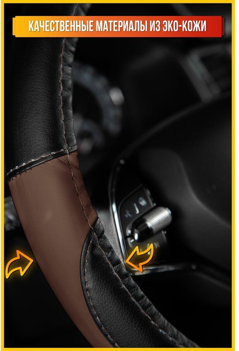 Купить Оплетка на руль Митсубиси Л200 5 (Mitsubishi L-200 5), М(37-39см), Черно-шоколадный