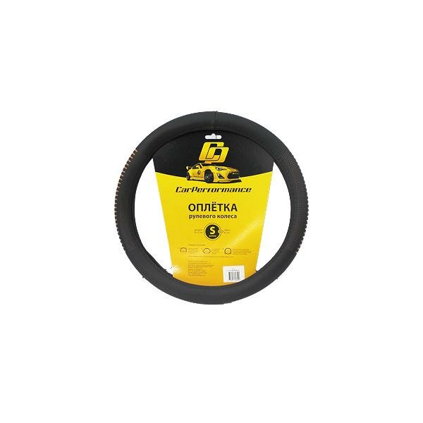 Купить Оплётка руля CAR PERFORMANCE CP-2033 BK/ORANGE (S), экокожа, контрастный рисунок под перфорацию, гладкая основа чёрн./оранжевый, разм.S,