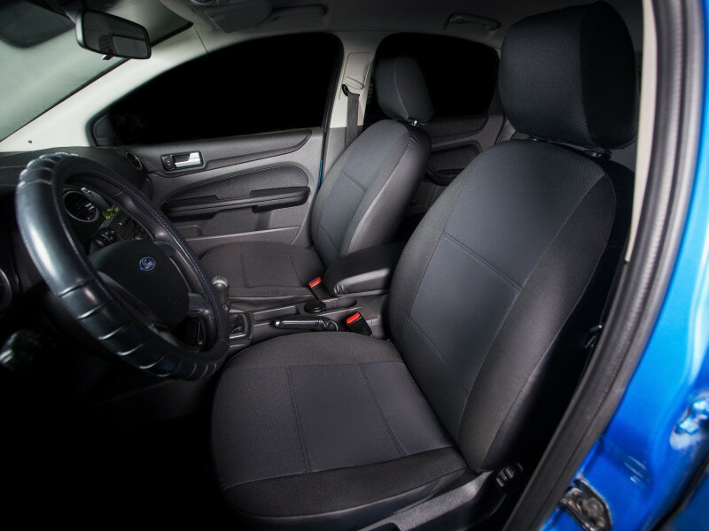 Комплект каркасных чехлов 5D CarFashion Consul Plus, чёрные, отстрочка серая