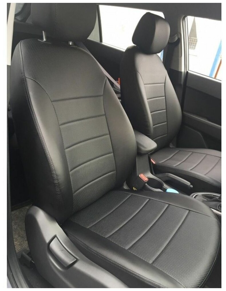 Чехлы на сиденья "Орегон" Hyundai Solaris I пок., I рест. (2010-2017)/Kia Rio III пок. (2011-2017) седан, спинка зад. дивана 2/3; черный; экокожа интересное: