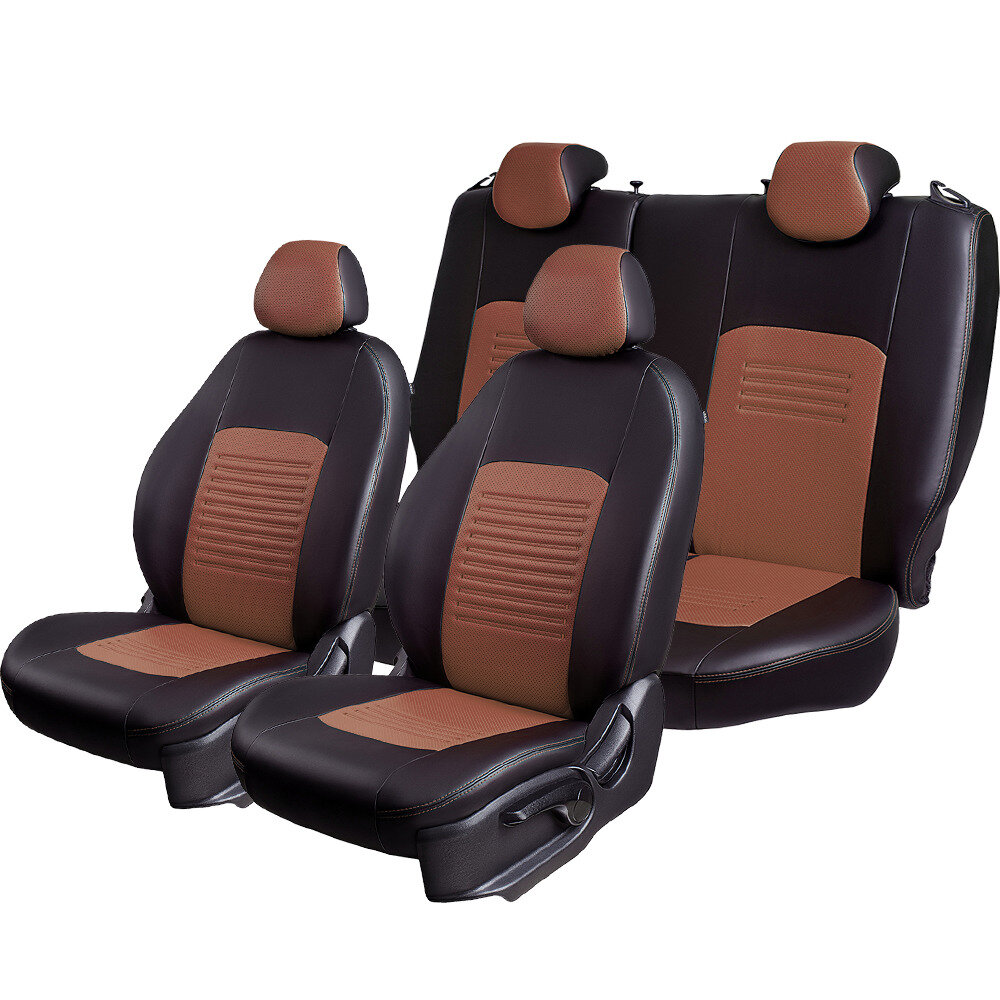Комплект каркасных чехлов 5D CarFashion Consul Plus, чёрные, отстрочка серая