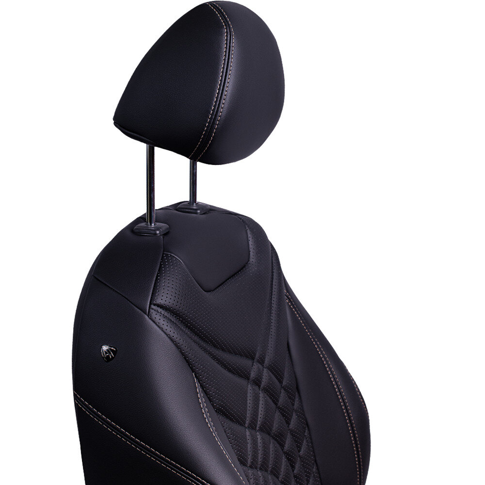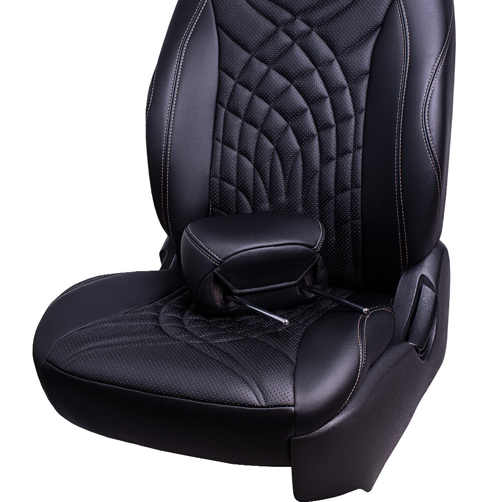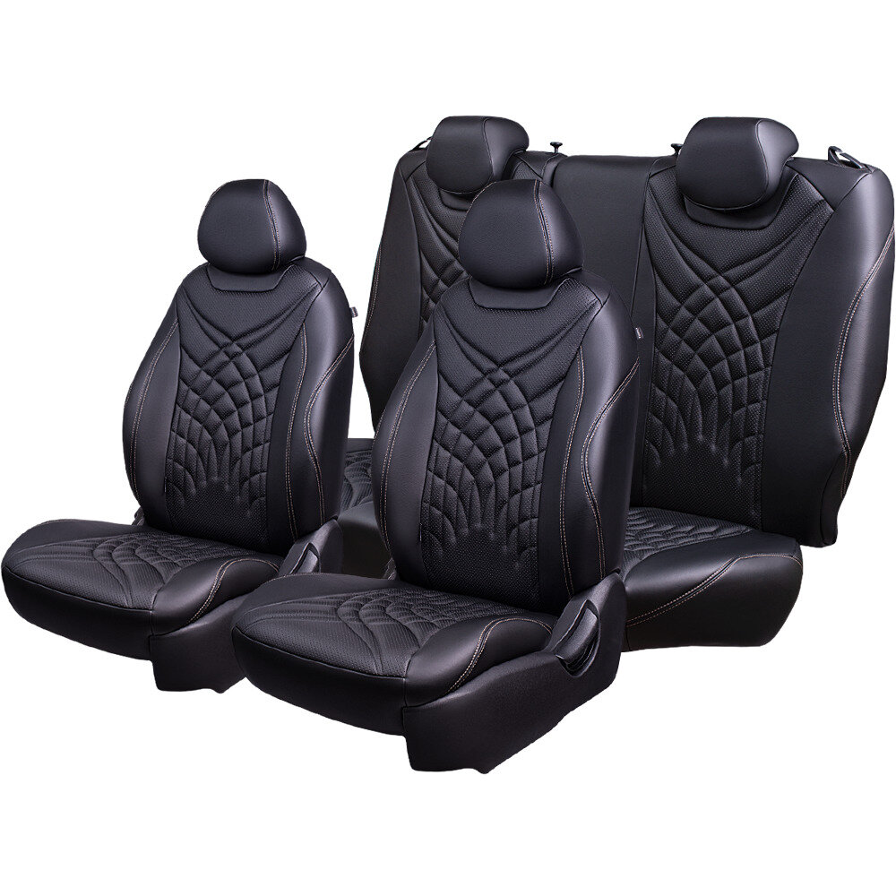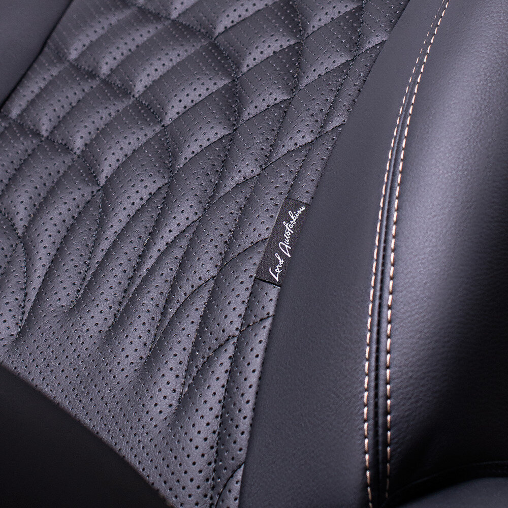 Комплект каркасных чехлов 5D CarFashion Consul Plus, чёрные, отстрочка серая
