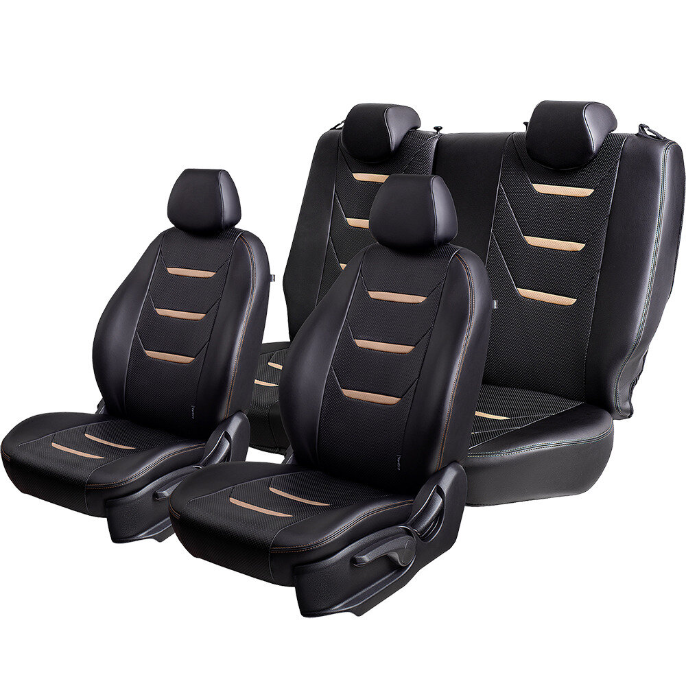 Комплект каркасных чехлов 5D CarFashion Consul Plus, чёрные, отстрочка серая