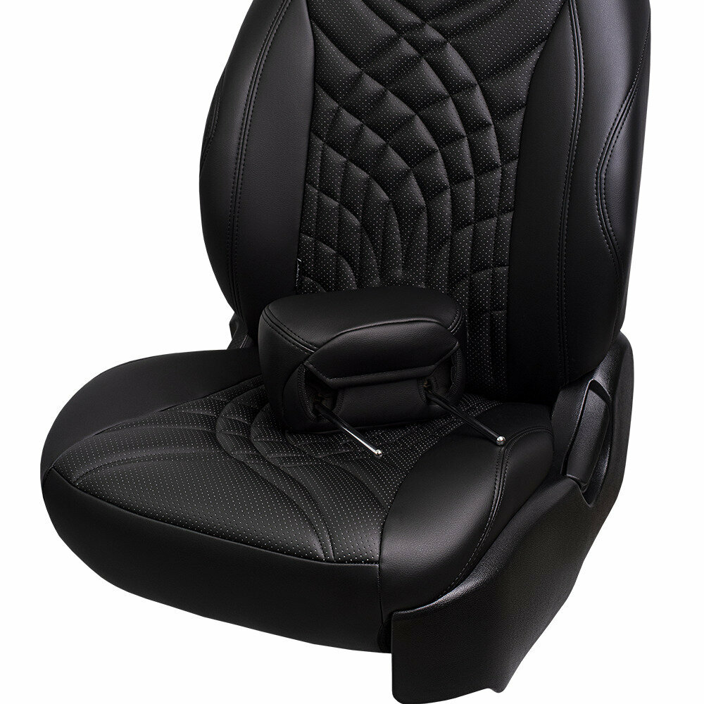 Комплект каркасных чехлов 5D CarFashion Consul Plus, чёрные, отстрочка серая