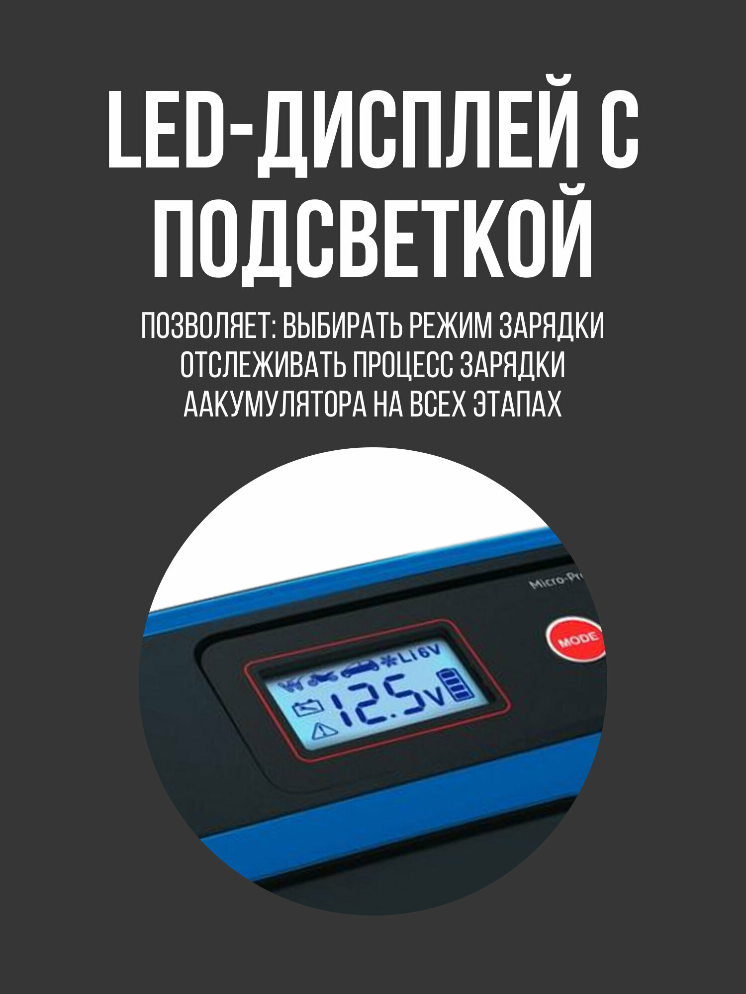 | Функции | режим зимней зарядки / подходит для AGM/GEL аккумуляторов |