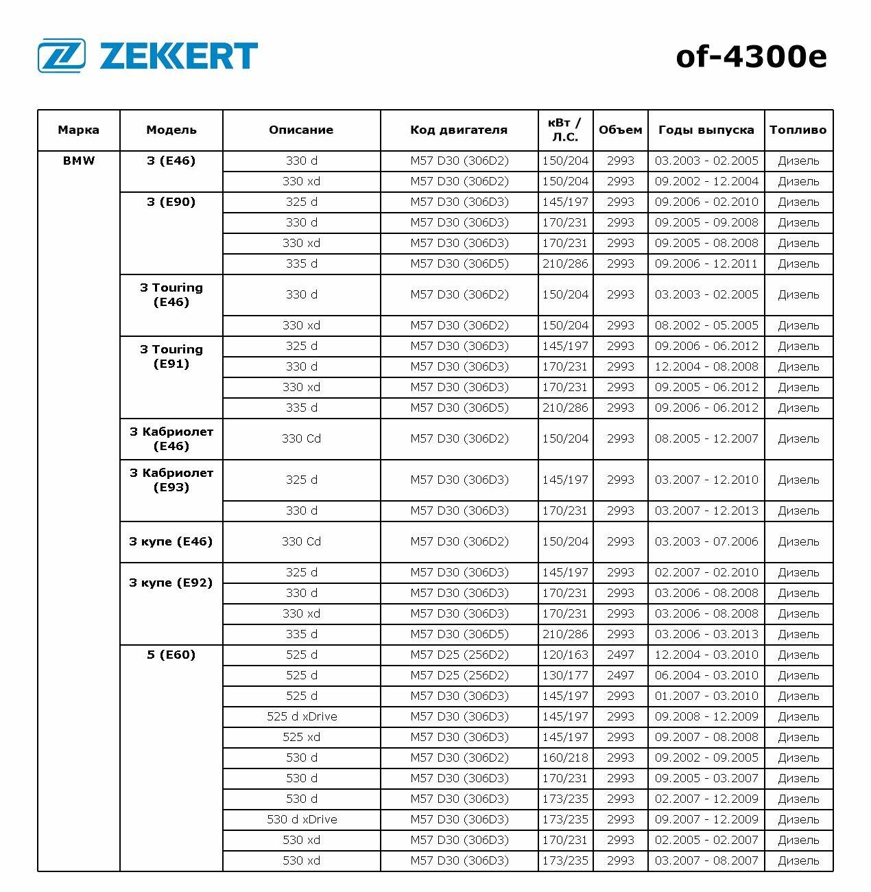 Фильтр масляный ZEKKERT of4300e для BMW 3 серия E46,E90,E91,E92,E93, 5 серия E60,E61, 6 серия E63,E64, 7 серия,
