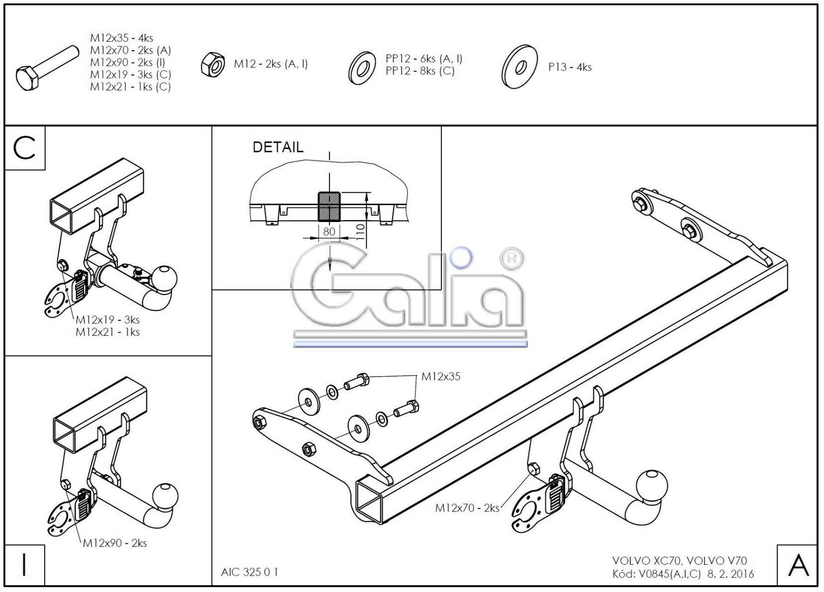 Купить Фаркоп Galia на Вольво XC70 2007-2016, арт:V084C
