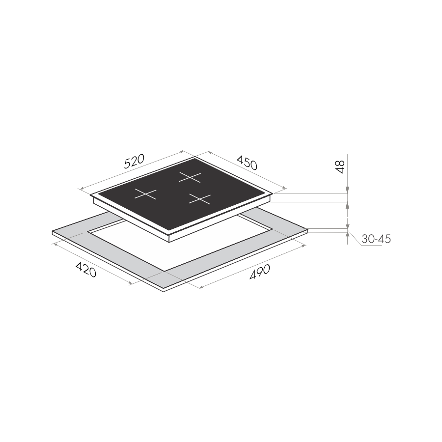 | Безопасность | защитное отключение конфорок / кнопка блокировки панели / индикатор остаточного тепла |