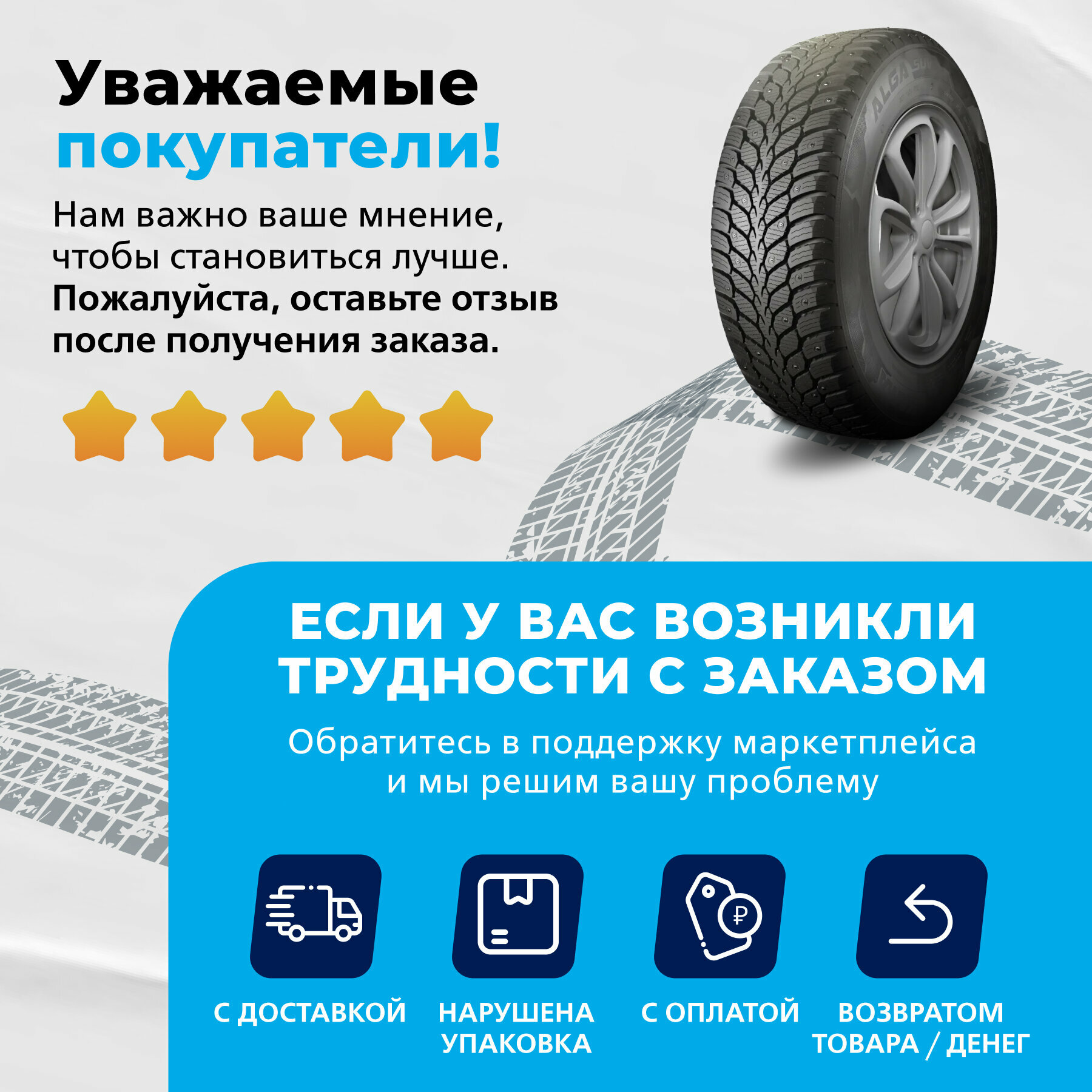 | Отзыв: | Шины приобрел для автомобиля Шевроле Нива, пришли быстро, внешний вид новые, все шипы на месте, обязательная цифровая маркировка присутствует в виде наклеек, на самой шине не нашел. |