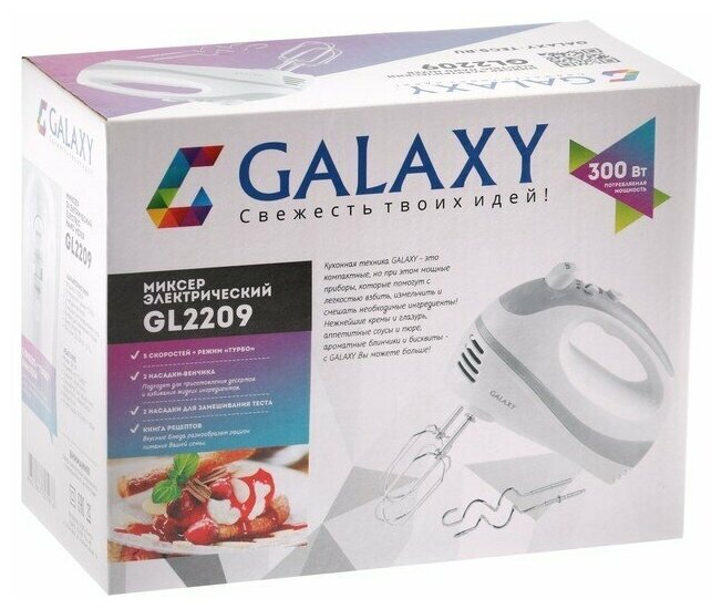 СохранитьПрочая бытовая техника GALAXY Миксер электрический GALAXY GL2209, белый с серебром интересное: