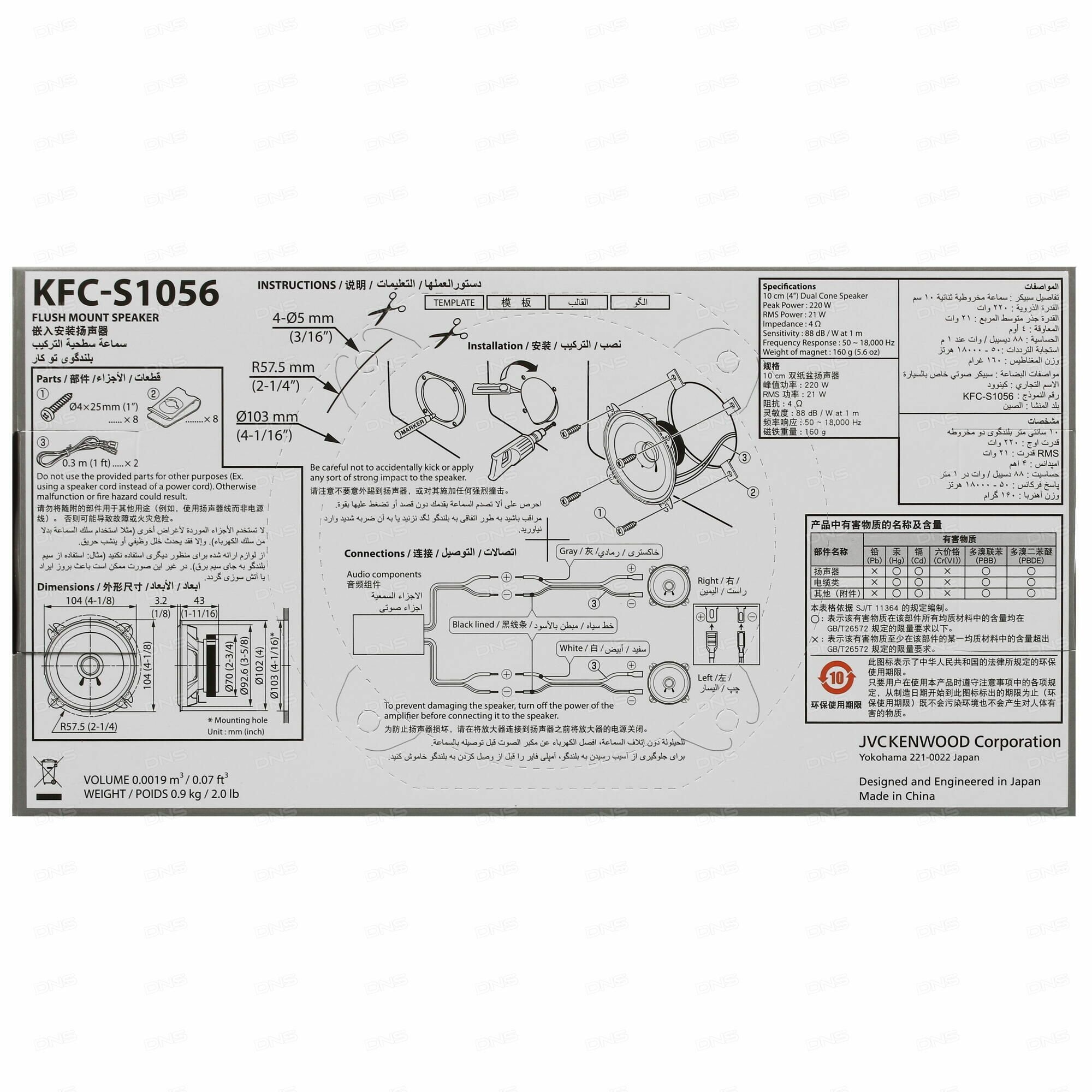Колонки автомобильные Kenwood KFC-S1056, 10 см (4 дюйм.), комплект 2 шт.