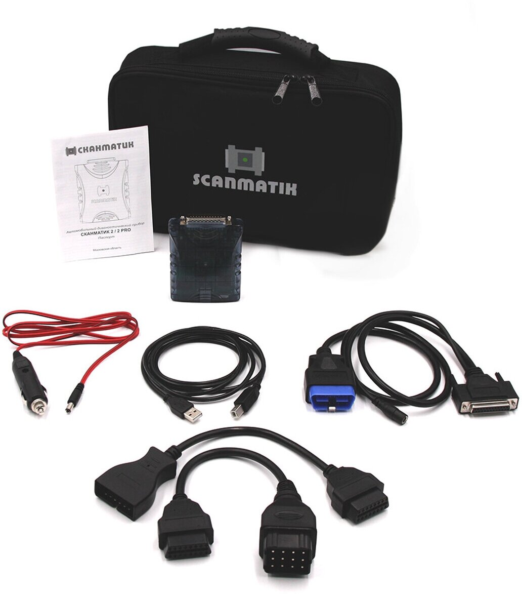 | Комплектация | Адаптер Сканматик 2 PRO, Главный кабель 1м, Кабель USB 1.8м, Кабель питания от прикуривателя, Драйвер J2534 для сторонних программ, GAZ-12 для ГАЗ и УАЗ, GM/VAZ-12 для ВАЗ и Daewoo, Кейс для перевозки |