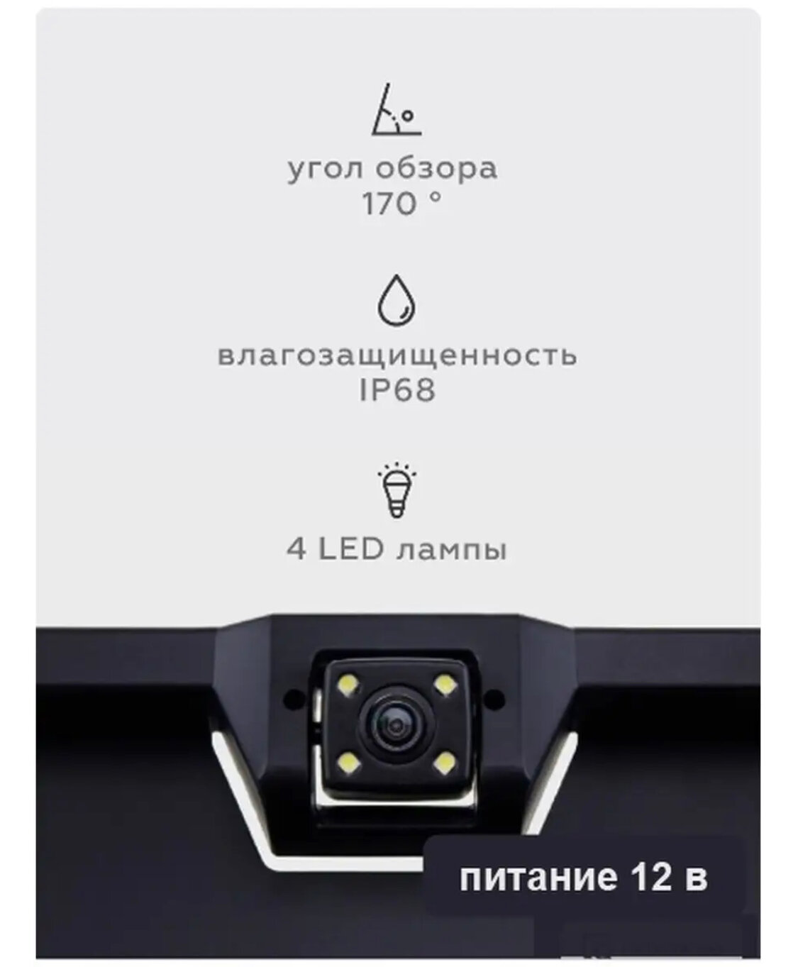 наклон камеры по вертикали / парковочные линии / светодиодная подсветка