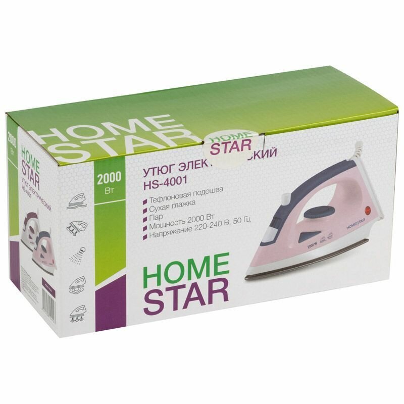 Утюг HOMESTAR HS-4001 бело-фиолетовый (2000Вт, пар, тефлоновая подошва)