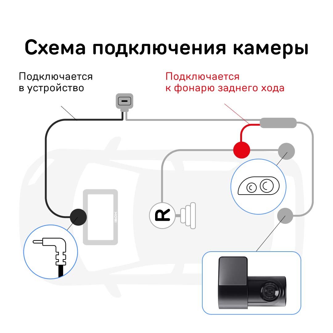 | Подробная комплектация | Автомобильная камера заднего вида, Провод токопроводящий с двумя соединителями, длина 5.5 м, Двухсторонний скотч. |