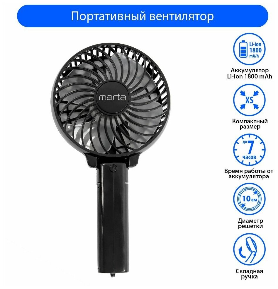 MARTA MT-FN2546 черный вентилятор портативый интересное: