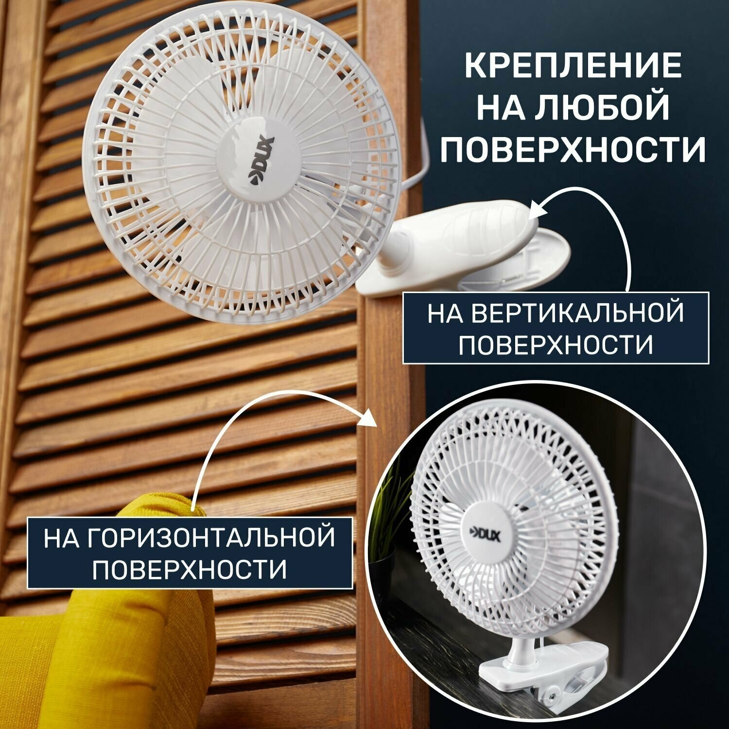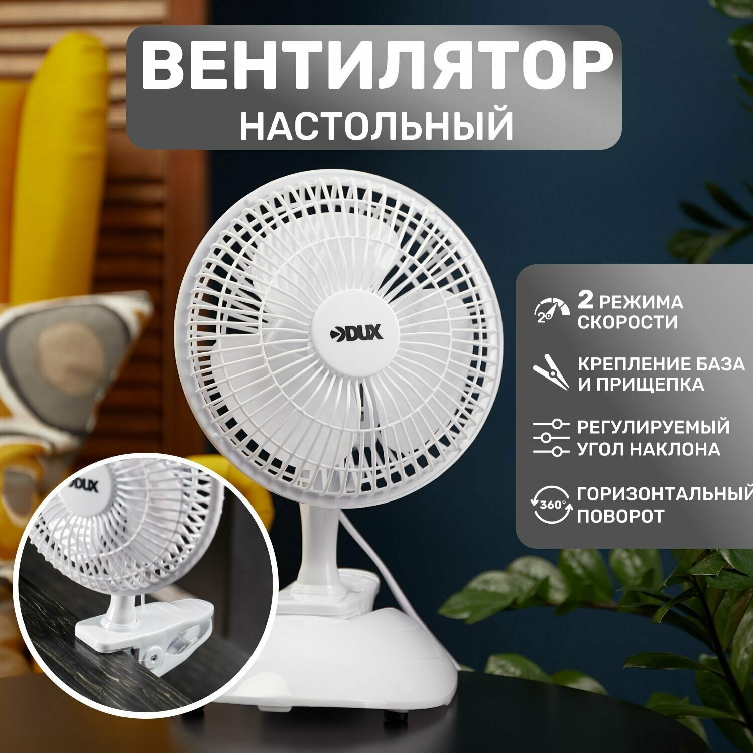 Вентилятор настольный DUX DX-614 60-0211 прищепка, 15 Вт, 15 см лопасти, 19 см решетка, белый