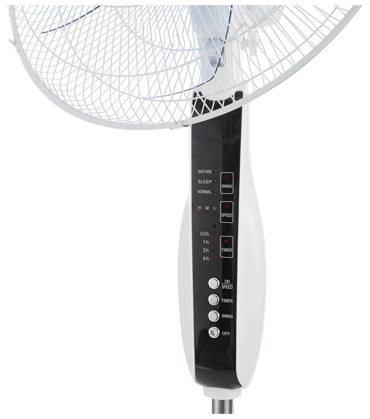 Купить Вентилятор напольный белый/синий 60 Вт, 5 лопастей, подставка круглая, д/у управление 60-0213 .