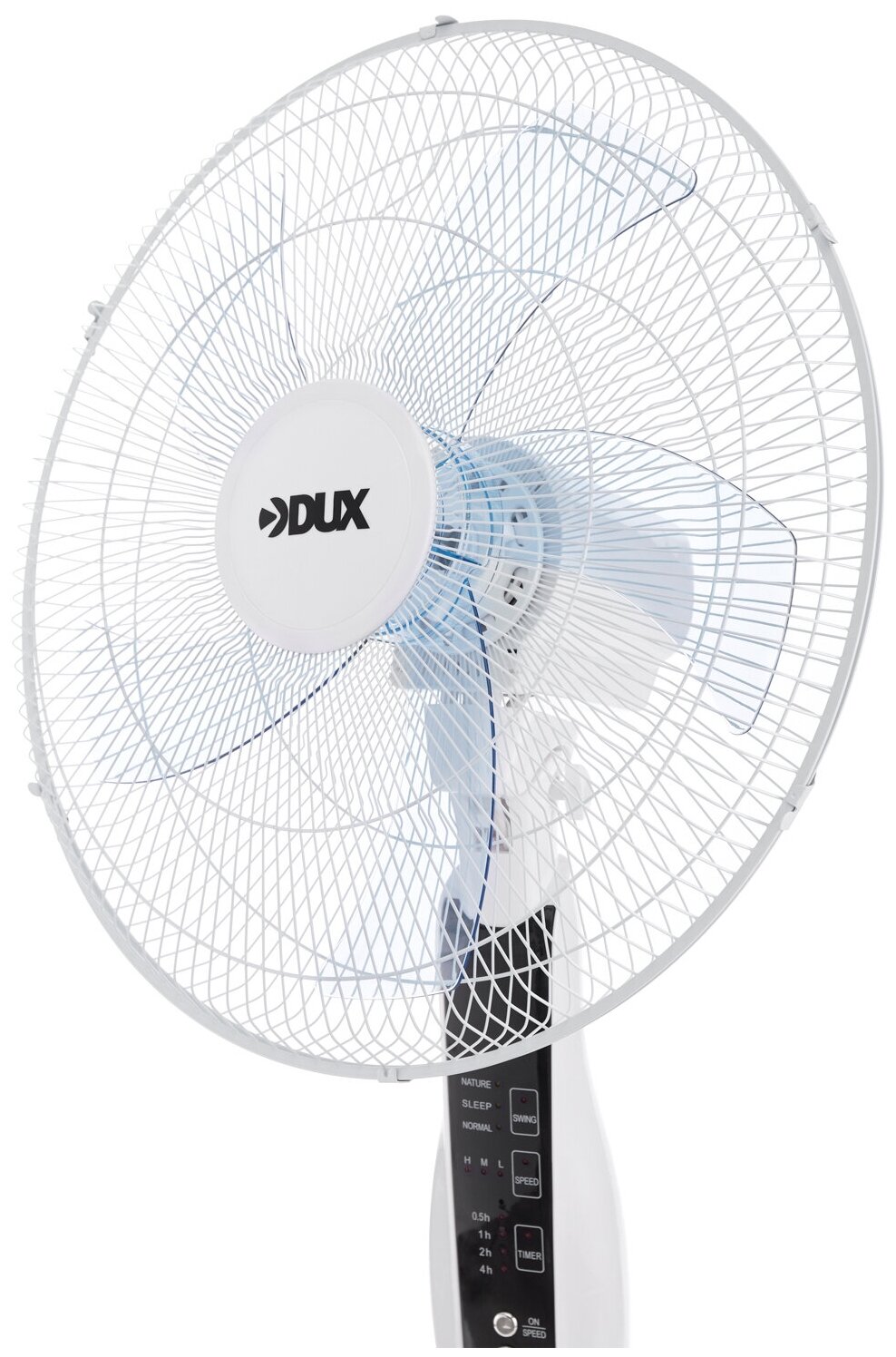 Вентилятор напольный DUX 60 Вт, 5 лопастей, подставка круглая, д/у управление, белый/синий