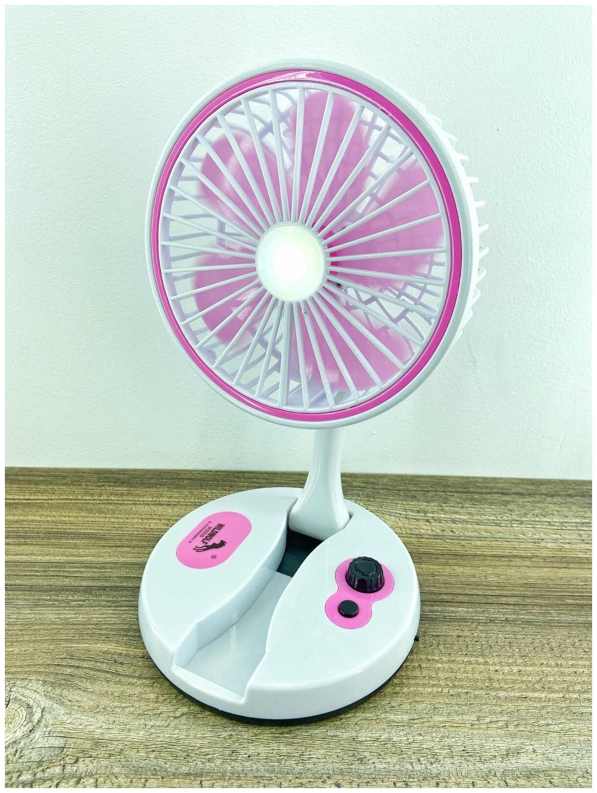 Вентилятор настольный складной, бело-розовый / Портативный вентилятор с регулировкой скорости / Вентилятор USB с ночником интересное: