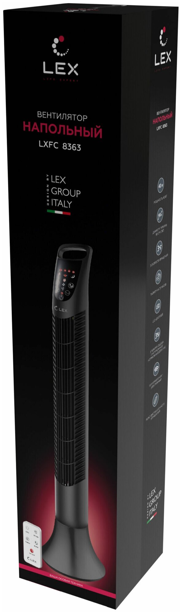 Вентилятор напольный с пультом колонный LEX LXFC 8363 , 36", 40Вт, с ПДУ, черный