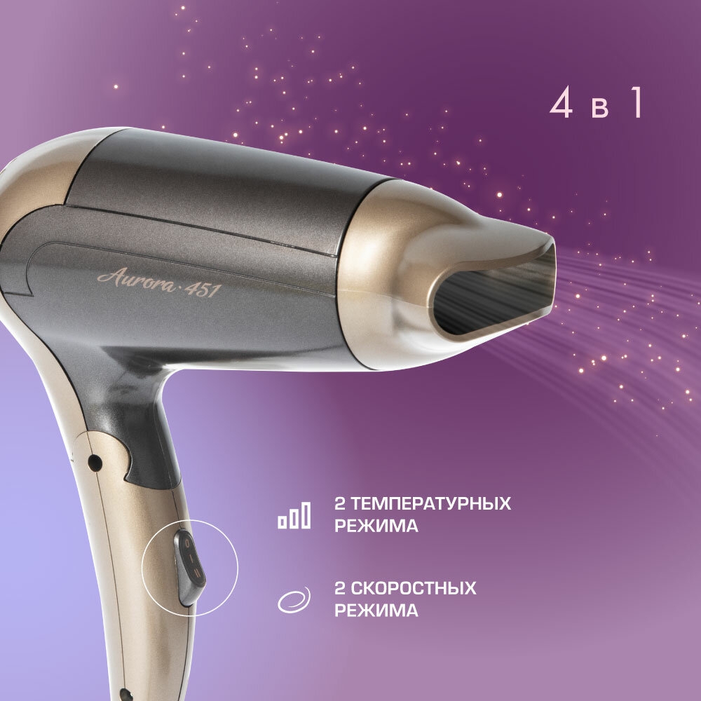 Фен для волос дорожный Endever Aurora-451 / 2000 Вт / 2 режима мощности / 2 режима температуры / складная ручка