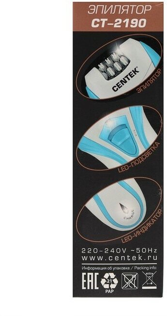 Эпилятор CENTEK CT-2190, синий/белый интересное: