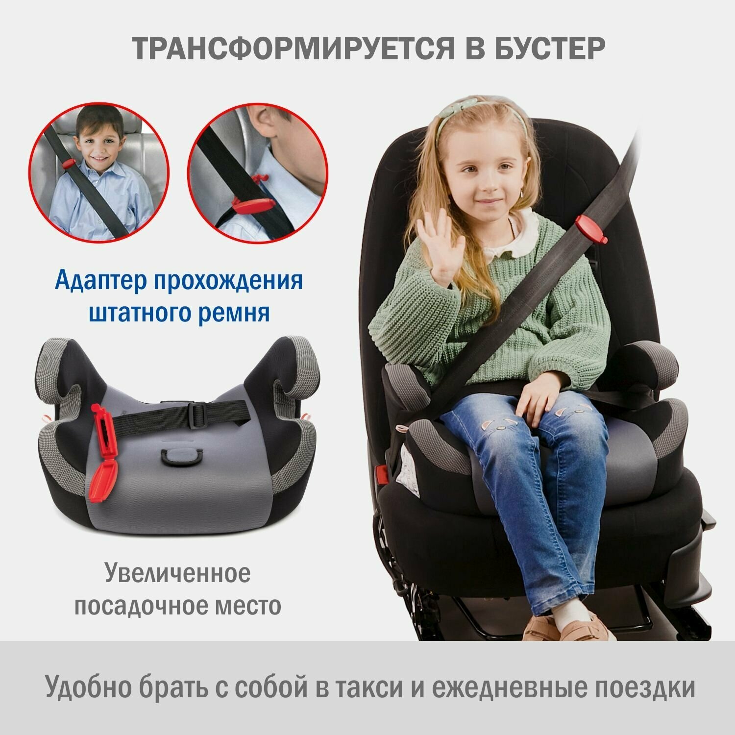 Автокресло-бустер «Стар», группа 1-2-3, цвет серый
