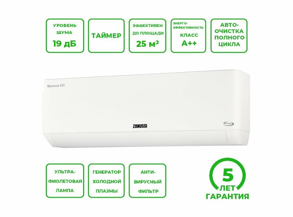Сплит-система инверторного типа Zanussi ZACS/I-09 HB/A22/N8 интересное: