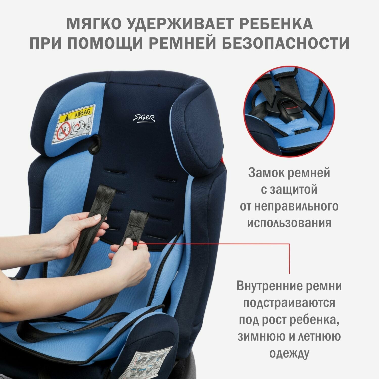 Удерживающее устройство для детей SIGER Диона голубой, гр. 0+/I/II, 0-25 кг, 0-7 лет KRES0463