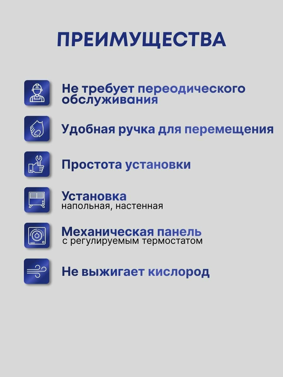 | Отзыв: | Купили в дачный дом для обогрева. У него аккуратный дизайн, незамысловатое управление. Греет очень хорошо, при этом дышится при его работе нормально, так как кислород из воздуха не выжигается. Для перемещения у конвектора есть колеса. При перегреве он отключается. |