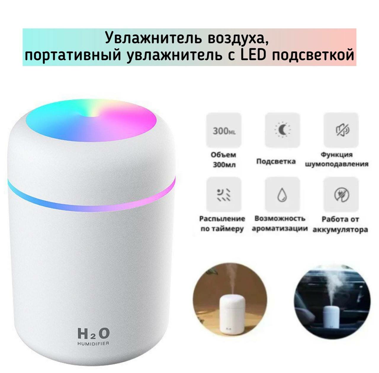 Увлажнитель воздуха, портативный увлажнитель с LED подсветкой, увлажнитель Estares 300мл, ,белого цвета интересное: