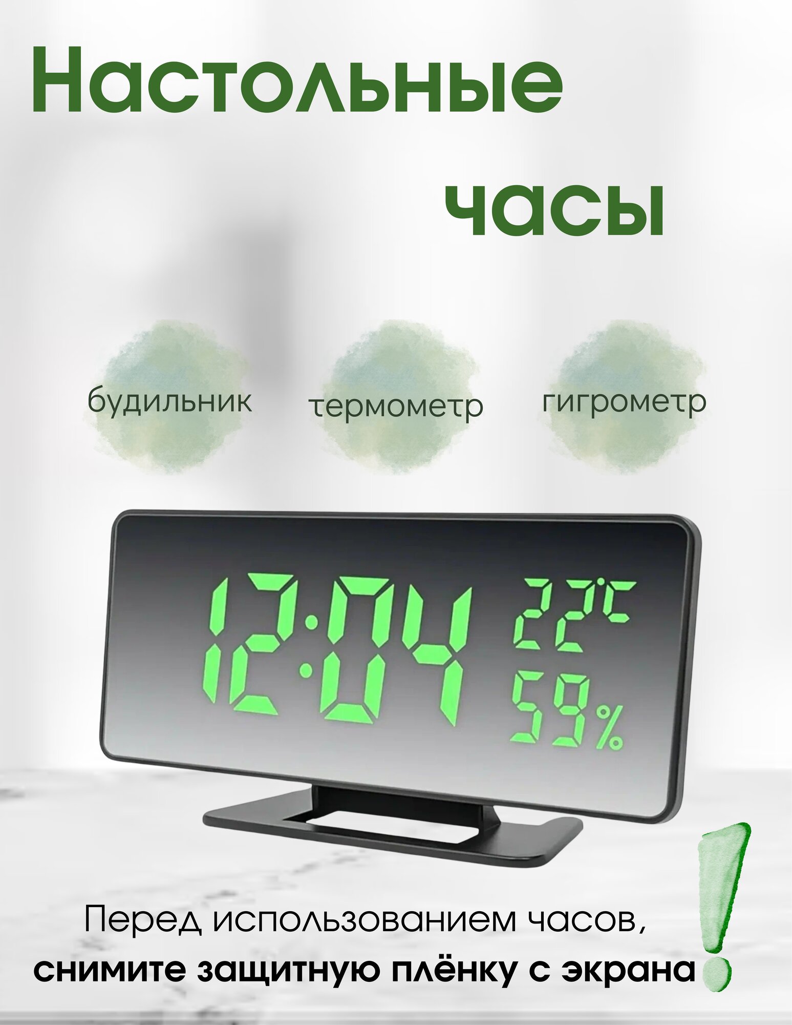 Часы USB электронные настольные с будильником, термометром и гигрометром (VST-888Y) черный корпус зелёная подсветка интересное: