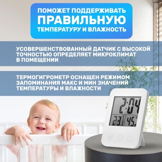 Сенсорный термогигрометр Halsa HLS-E-101 с часами и функцией будильника интересное: