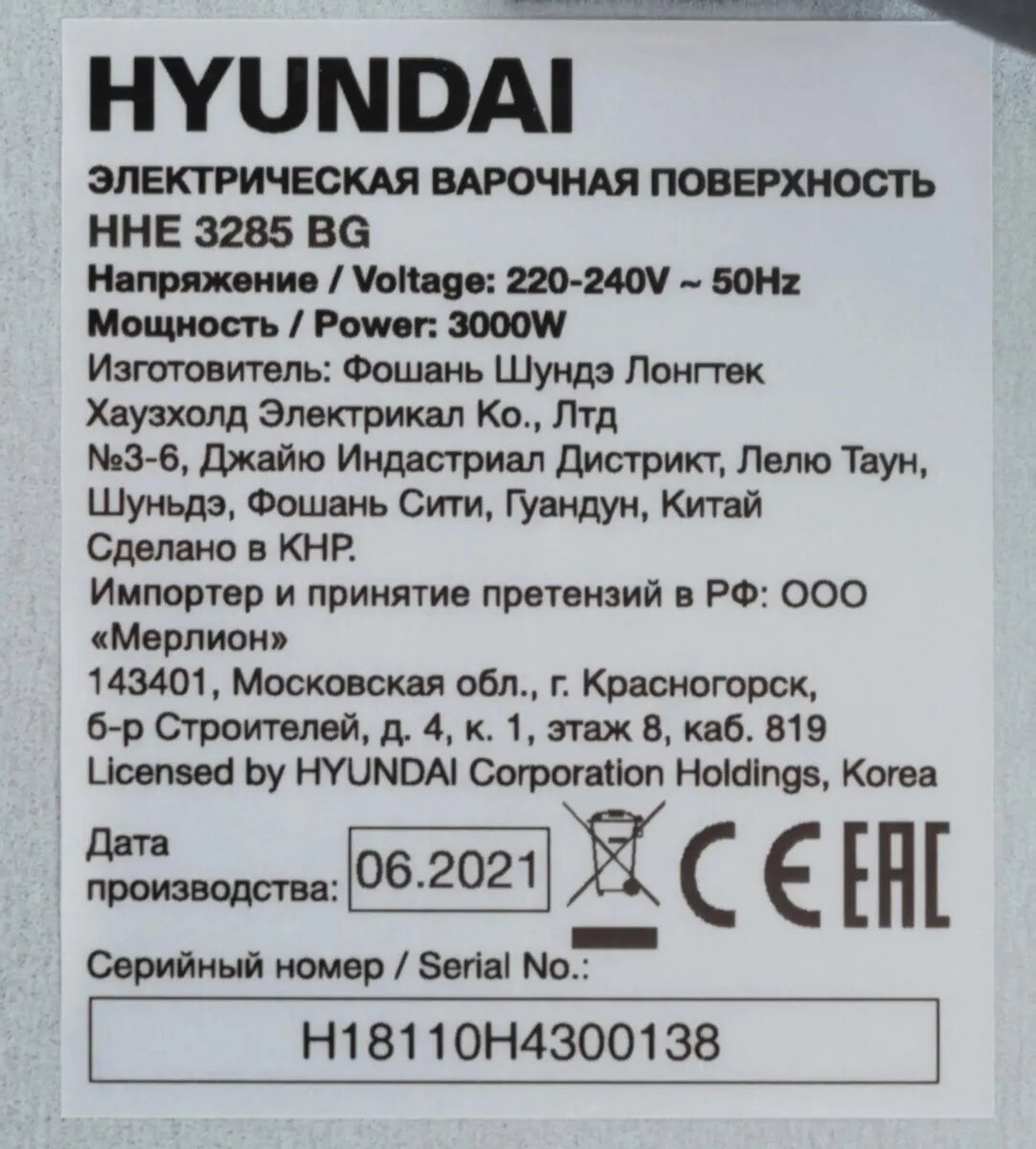 СохранитьЭлектрическая варочная панель Hyundai HHE 3285 BG, Hi-Light, независимая, черный интересное: