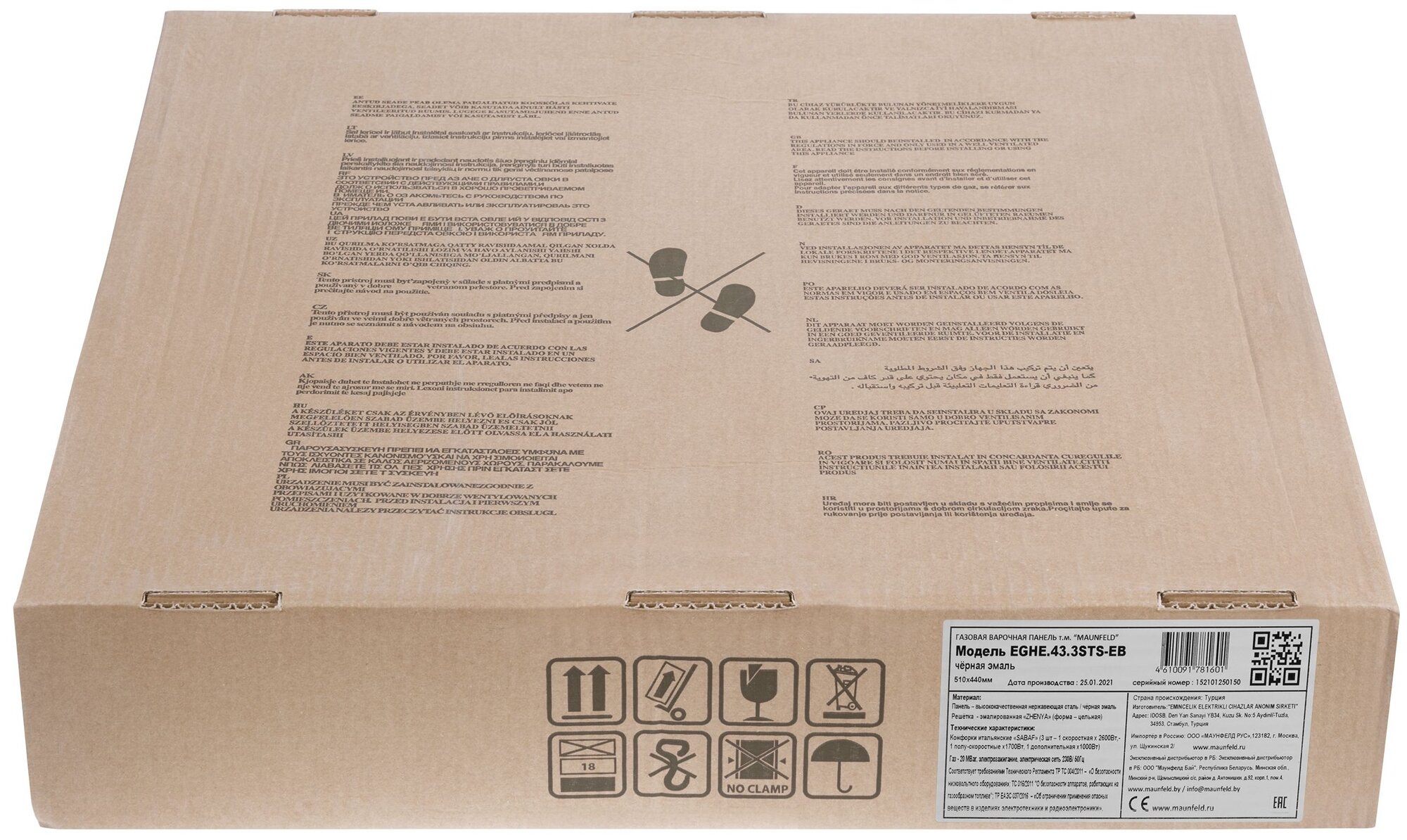 Купить Встраиваемая газовая панель MAUNFELD EGHE.43.3STS-EB