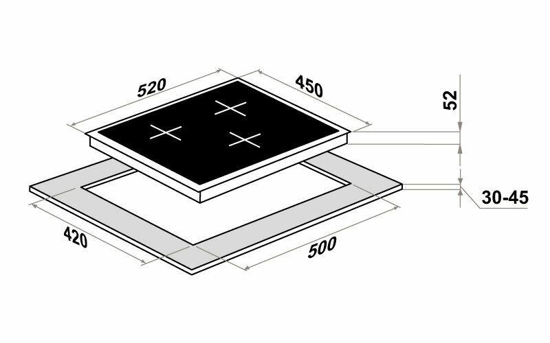 | Размеры конфорок | 1х165мм,1х200мм,1х200 мм |