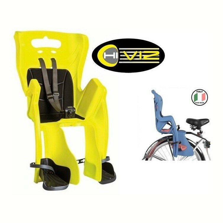 Велокресло детское на подседельный штырь Little Duck Hi-Viz, светоотр до 7лет/22кг TUV BELLELLI (Ит)