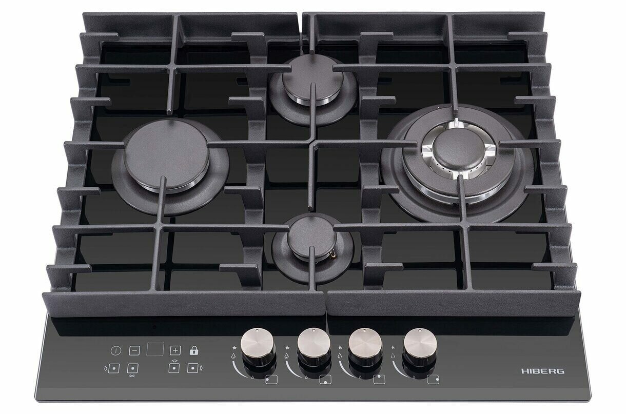 Газовая варочная поверхность HIBERG VM 6145 B, WOK конфорка, электророзжиг, газ-контроль, таймер, черный
