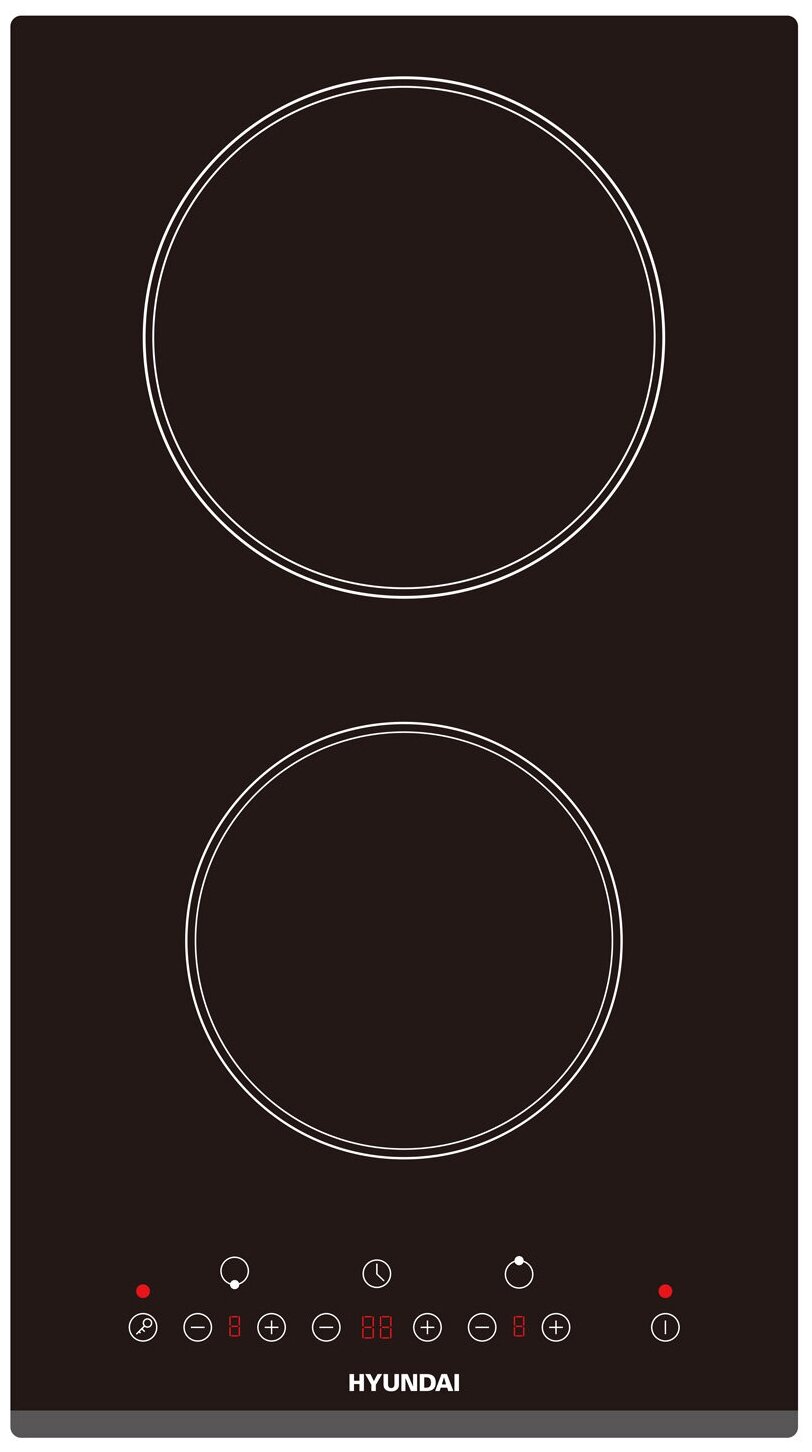 Электрическая варочная поверхность электрическая Hyundai HHE 3285 BG, 30 см, черный, с функцией блокировки и 2 зоны нагрева Hilight
