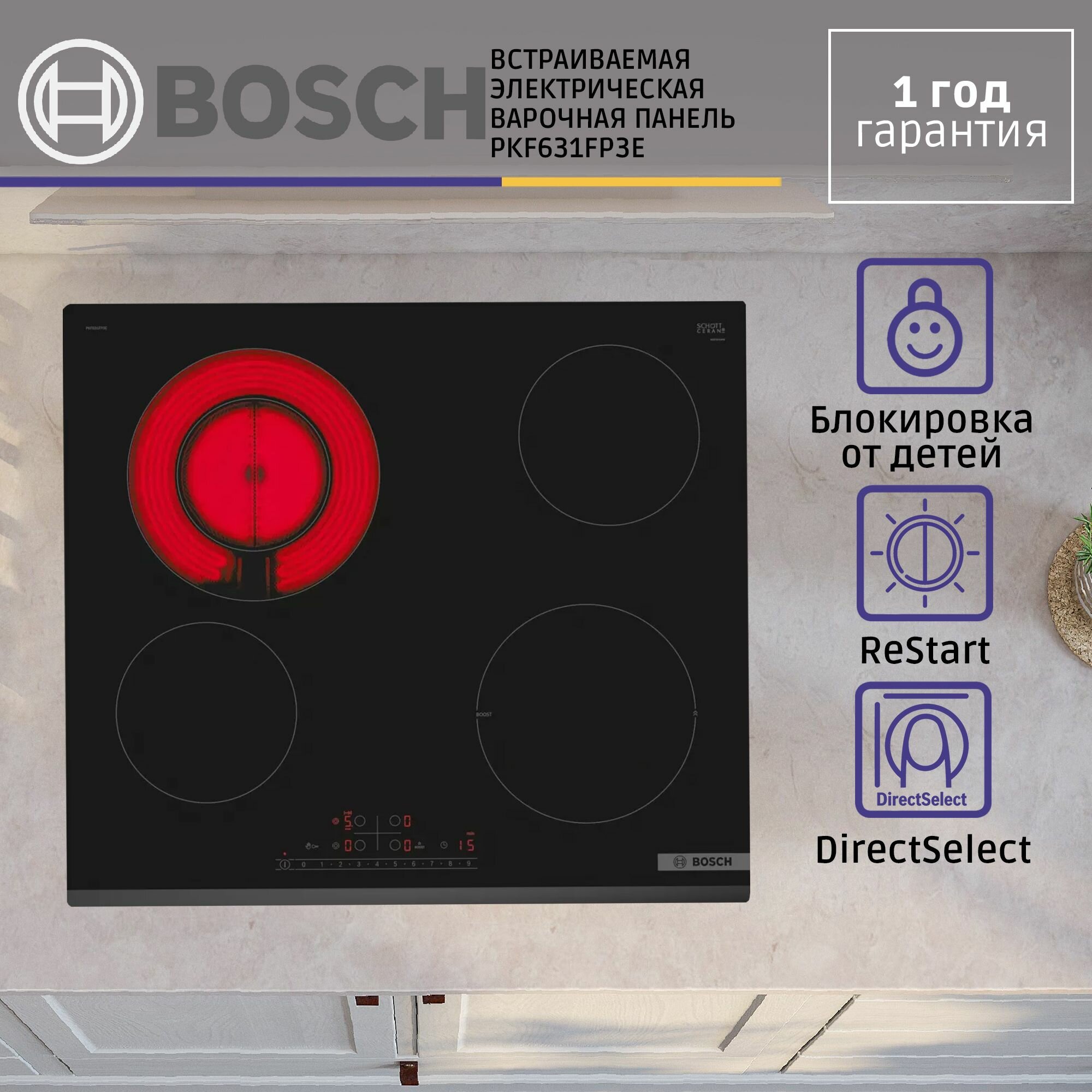 Электрическая варочная панель Bosch PKF631FP3E интересное:
