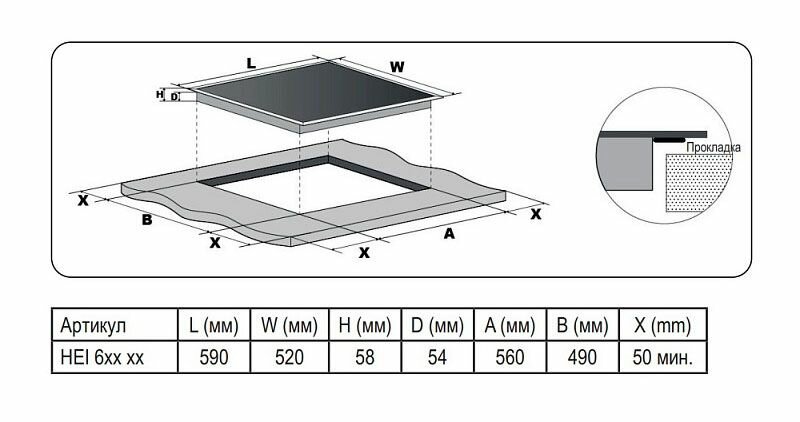 | Ширина для встраивания | 56 см |