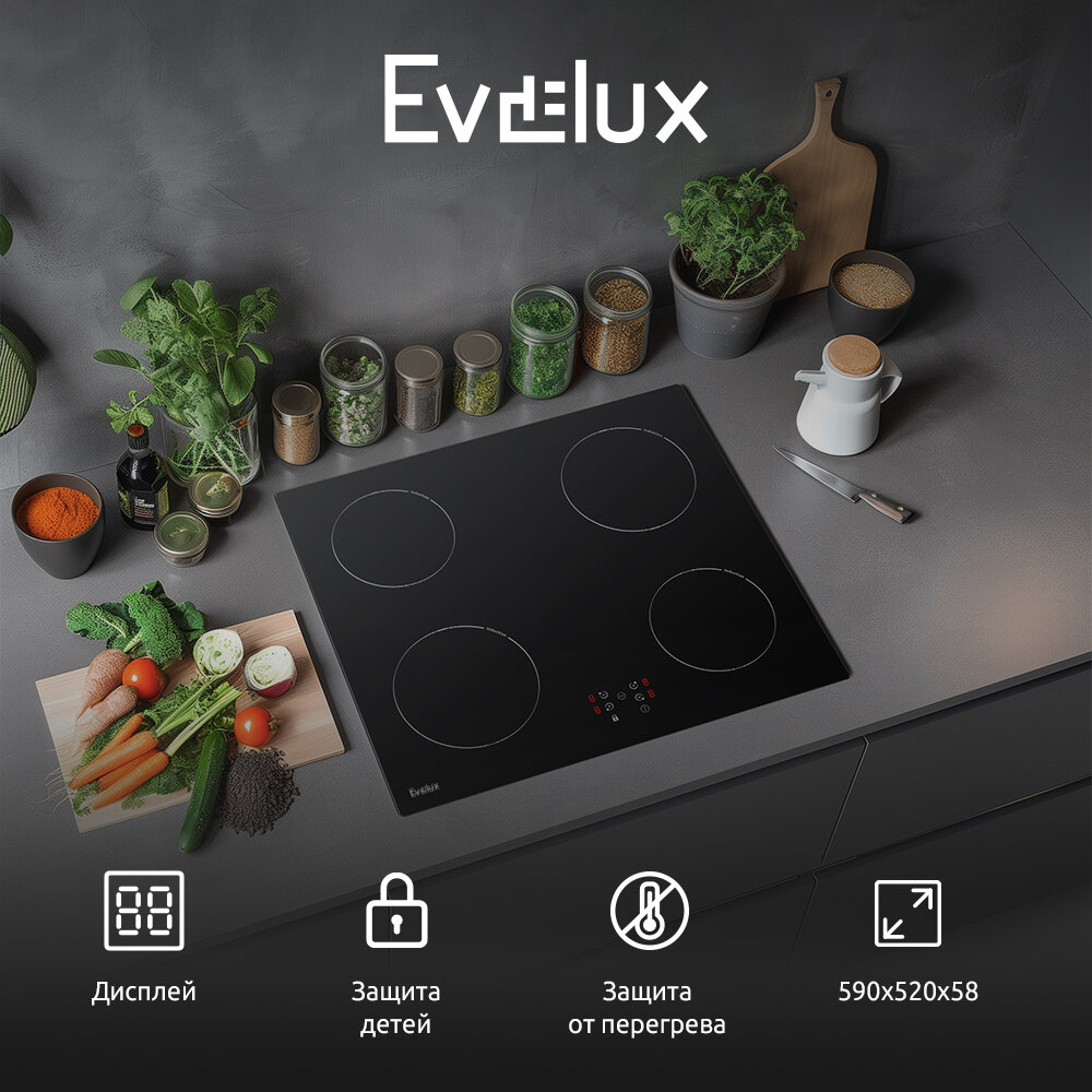 Варочная панель Evelux HEI 640 B 590x520 Черный
