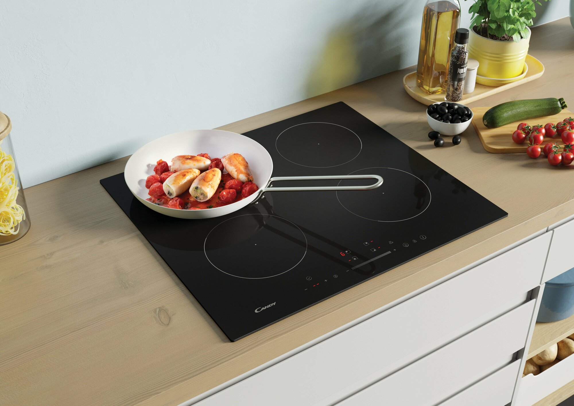 Candy Встраиваемая варочная панель Индукционная шириной 60 см. 4 индукционных зоны нагрева. Управление: сенсорный монослайдер. Режим "Пауза". Режим "Поддержание тепла". Booster. Таймер (мульти). Регулировка максимальной мощности подключения 2,5 - 7,4 кВт.