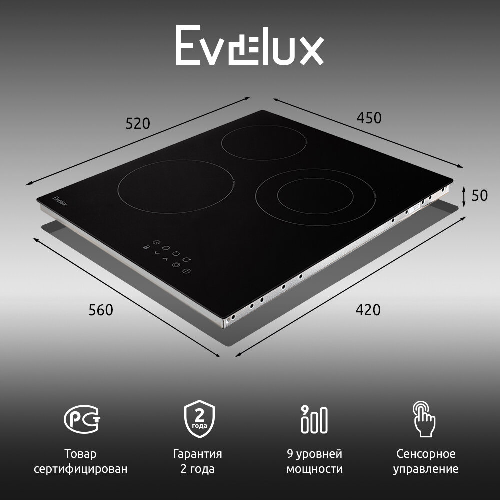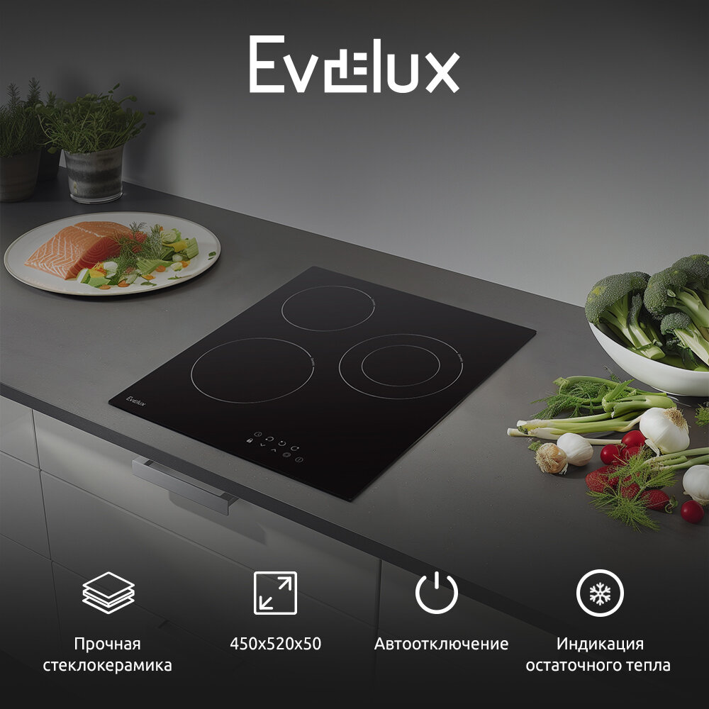 Варочная панель Evelux HEV 431 B 520x450x50 чeрный