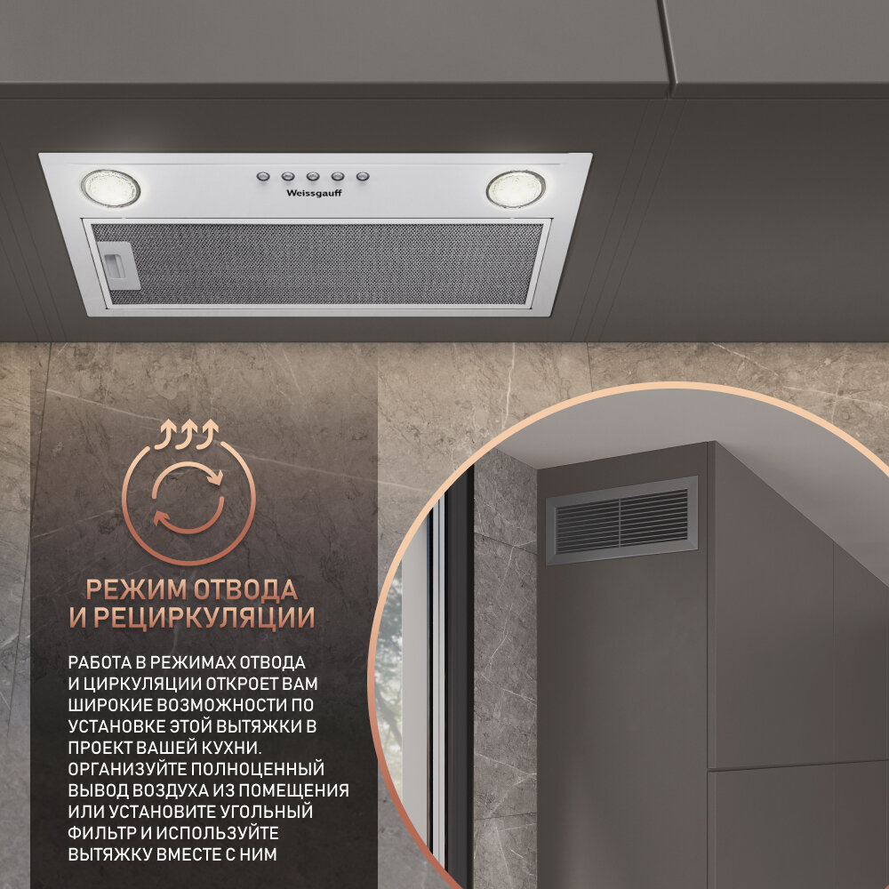 СохранитьВытяжка встраиваемая Weissgauff Alpha 45 PB WH интересное: