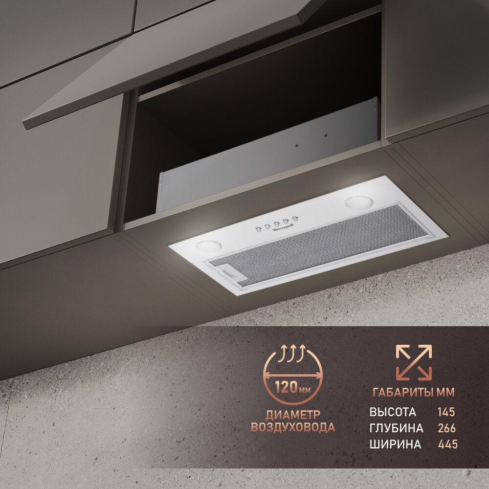 Купить Вытяжка встраиваемая Weissgauff Alpha 45 PB WH
