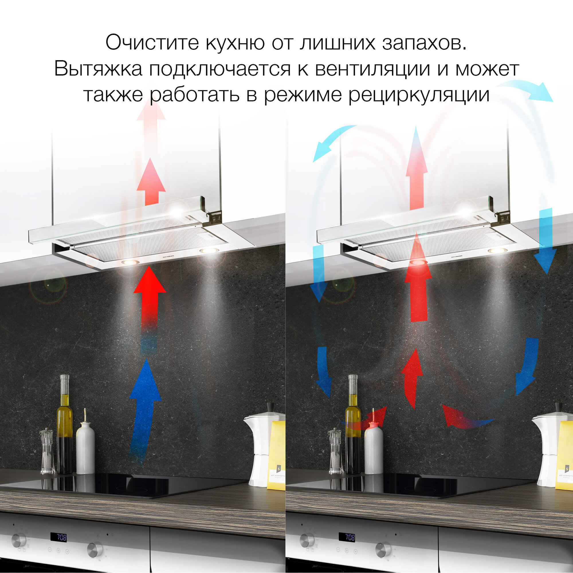 | Отзыв: | даже когда не готовлю часто выдвигаю ее в качестве дополнительного света, чтобы не включать основную люстру. Так намного комфортнее глазам, даже при дневном свете. При работе видно, как весь пар идёт вверх, запахов особо по остальной квартире. |