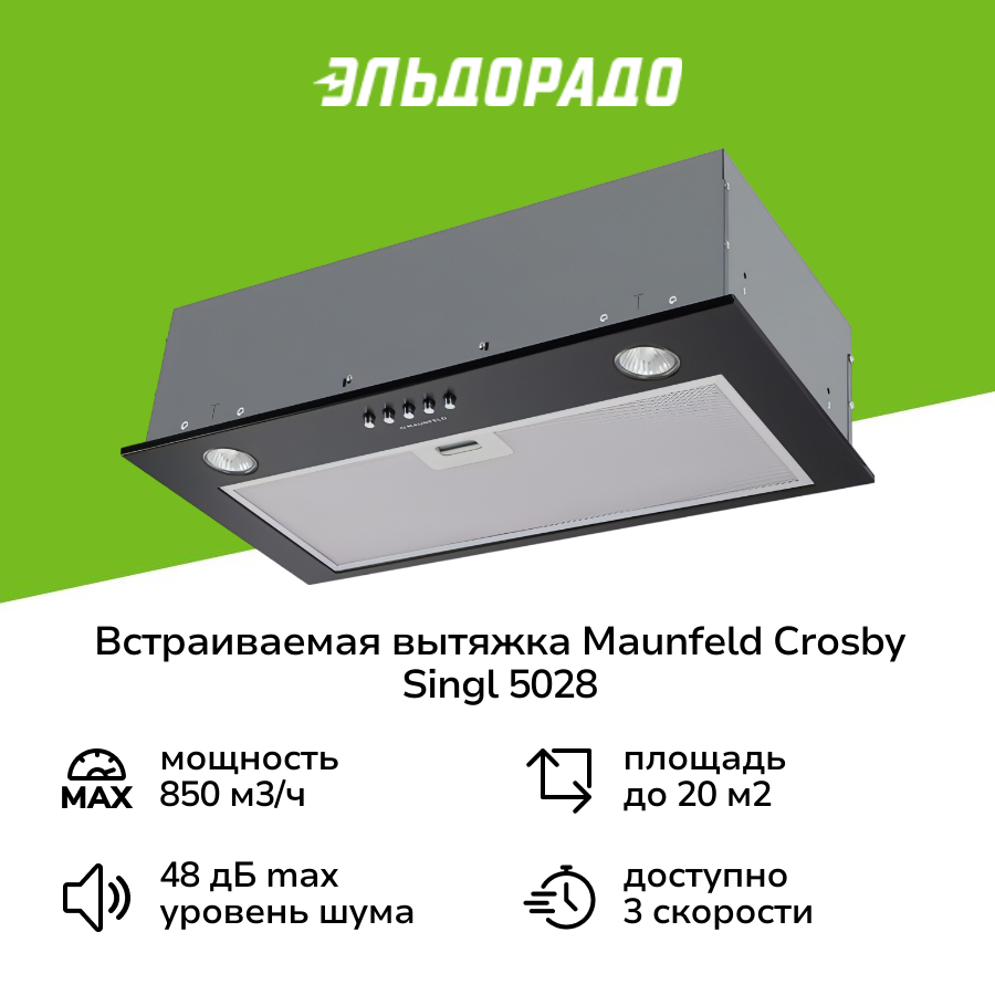 Встраиваемая вытяжка MAUNFELD Crosby Singl 5028, управление кнопочное, черный [ка-00014757]