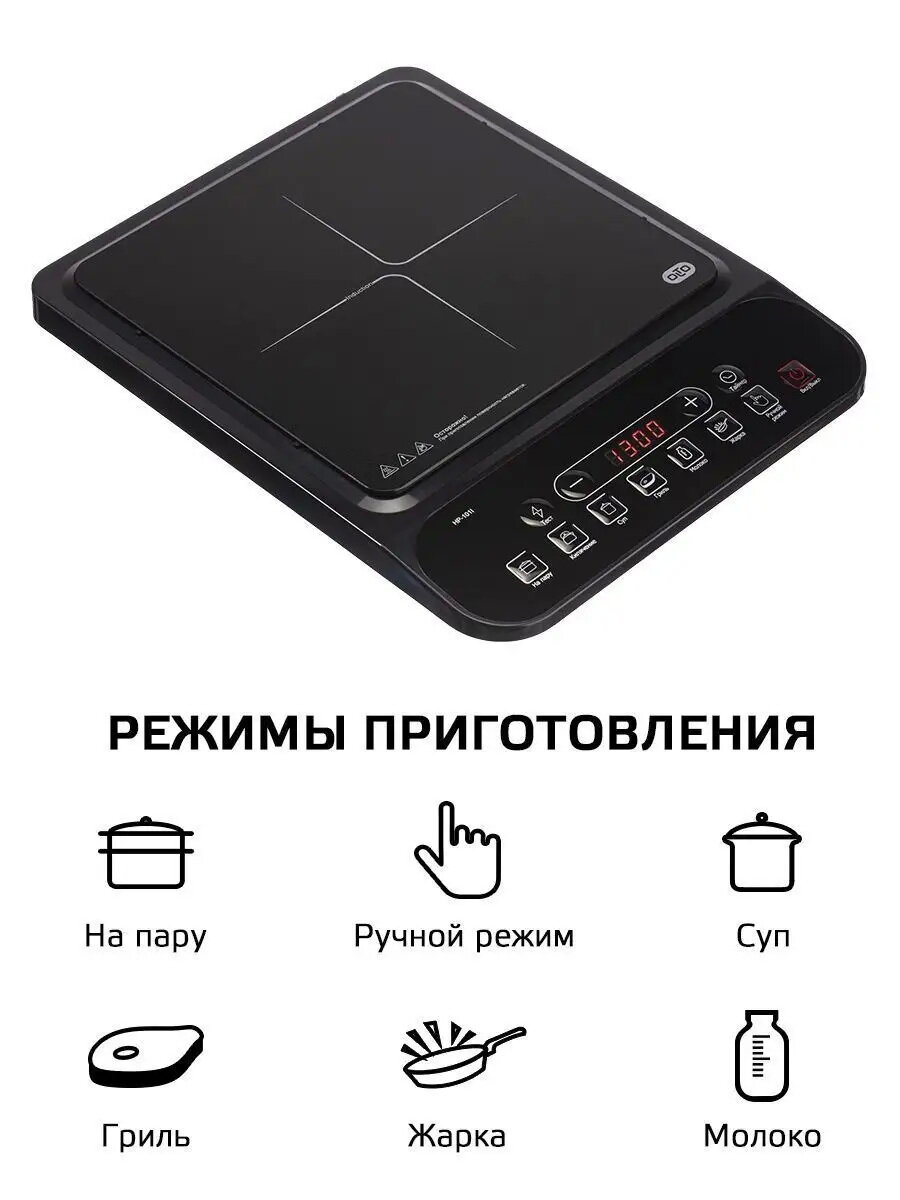 Индукционная плита настольная OLTO HP-101I, мощность 2000 Вт, управление электронное, черная